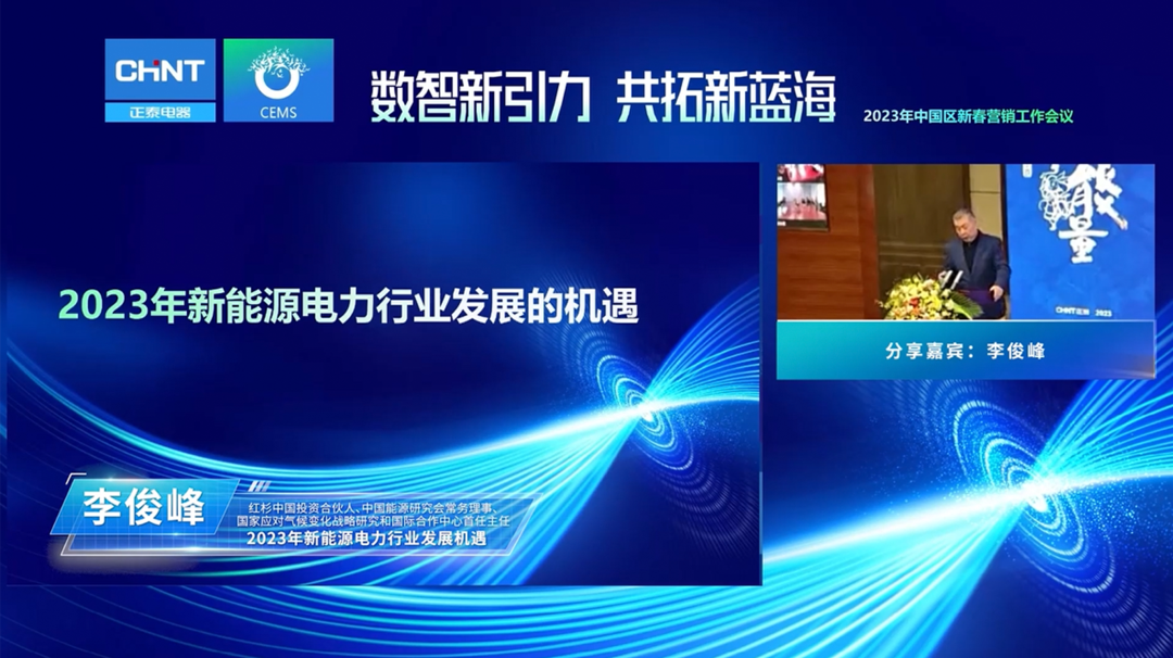 红杉中国投资合伙人、中国能源研究会常务理事、国家应对气候变化战略研究和国际合作中心首任主任李俊峰参会并详细阐述了2023年新能源电力行业发展机遇。他认为,可持续发展理念,尤其是双碳目标加速了能源转型步伐,高比例的新能源和新能源电力是未来能源系统的基本特征。只有通过技术和机制的创新,才能把握未来能源发展的重大机遇。结合正泰现状,他还提供了前瞻性意见和专业性指导:坚持“三化”,即电气化,数字化,全球化方向,是正泰电力新能源未来发展的必由之路。