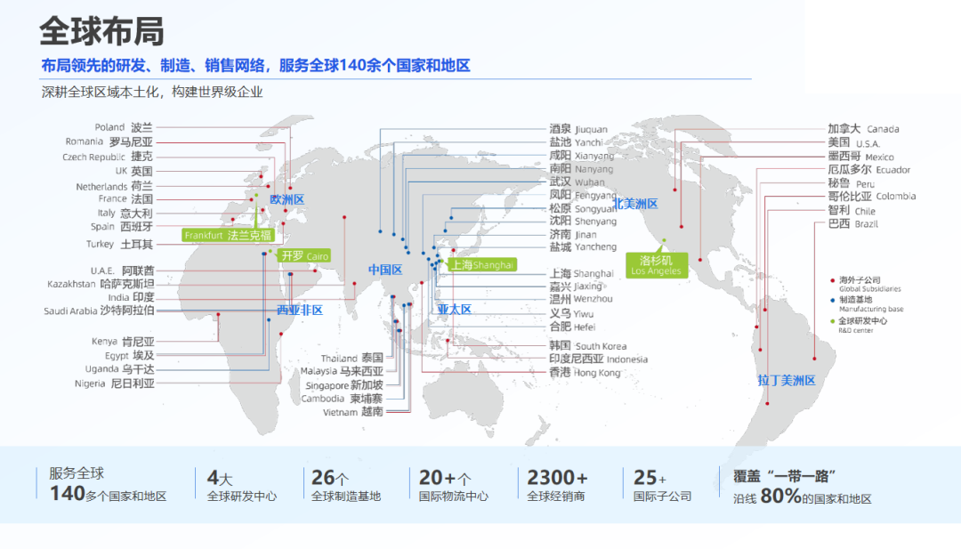 作为全球智慧能源解决方案提供商,正泰业务遍及140多个国家和地区,拥有4大全球研发中心,6大国际营销区域,制造基地遍布超16个国家和地区。