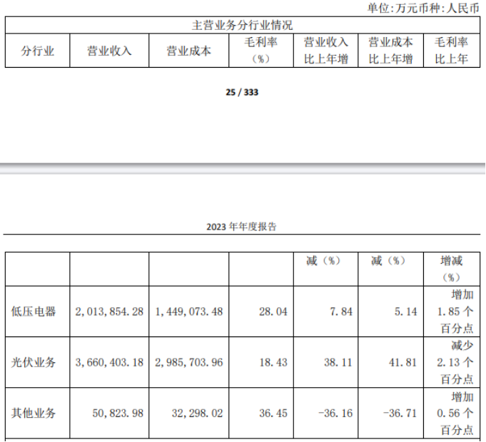 虽然总体营收增长,但利润表现却没跟上节奏。同期实现的归母净利润为36.86亿元,同比下降8.27%。鉴于正泰电器持有的中控技术(688777.SH)股份公允价值变动对当期净利润影响为-1.23亿元,剔除该因素影响后的归母净利润为38.09亿元,较2022年同期下降4.49%。