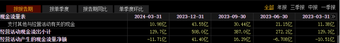 由于拟出售电站增加,2023年正泰电器存货激增68.81%至379.44亿元。今年一季度,存货依旧同比大增74.17%至362.29亿元,处在历史高位。存货大量垫资导致正泰电器经营活动变现能力较差,一季度经营性现金流从2023年的41.4亿元降至今年一季度的-11.71亿元。