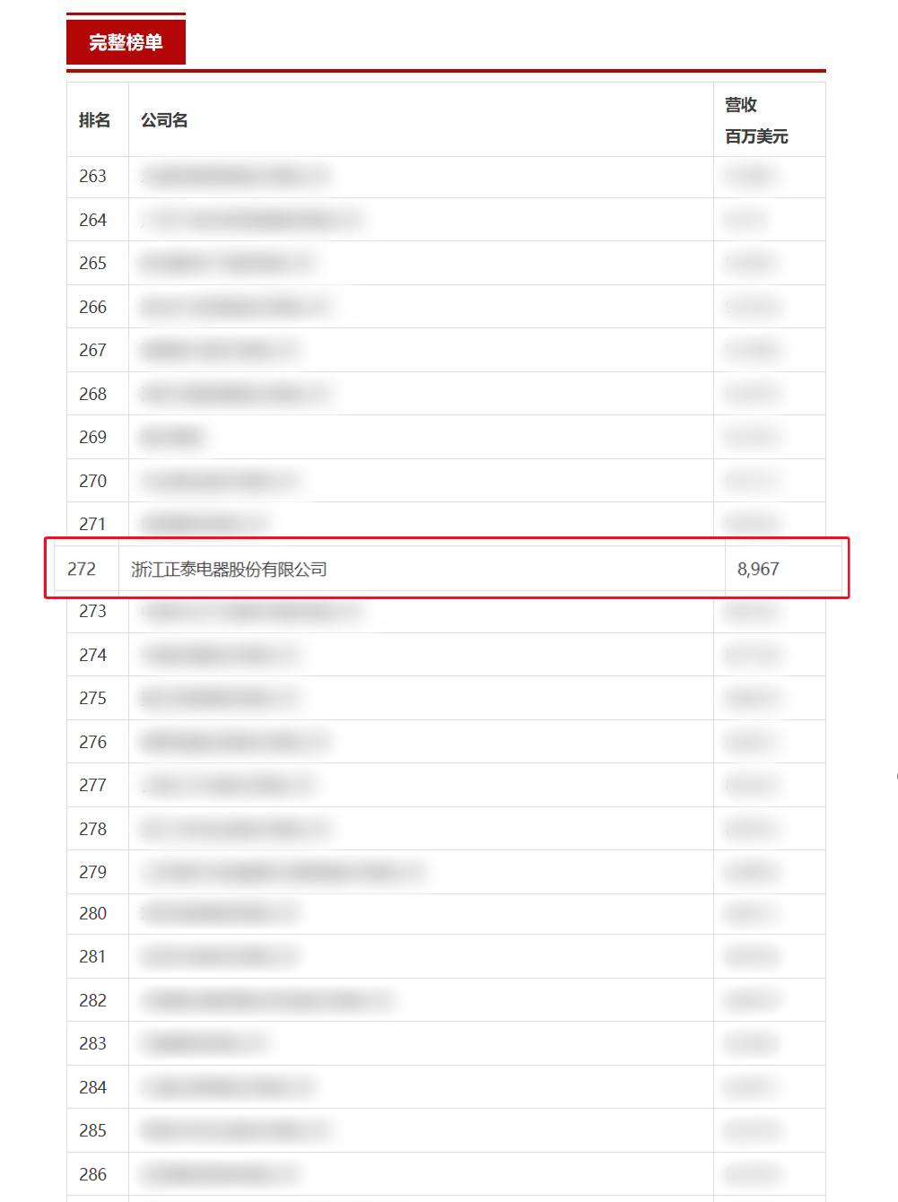 7月22日,2025年《财富》中国500强榜单发布,正泰电器凭借2024年8967百万美元(约合人民币646亿元)的营收表现名列榜单第272位,较2024年榜单第305位上升33个名次,展现强劲增长动能。
