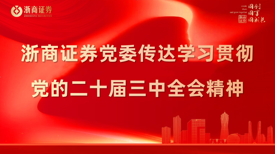 7月23日下午,浙商证券党委召开理论学习中心组会议,传达学习党的二十届三中全会精神和浙江省委常委会(扩大)会议精神,研究部署学习贯彻落实举措。浙商证券党委书记、总裁钱文海主持会议。