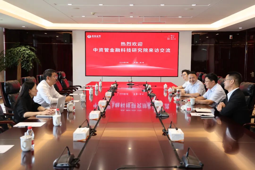 8月22日,中资管金融科技研究院院长宋光磊到浙商证券开展业务交流。浙商证券董事长吴承根、董事会秘书邓宏光,中资管金融科技研究院行政总监兼上海院副院长吕敏出席交流座谈会,浙商证券战略投行部负责人等参加座谈。