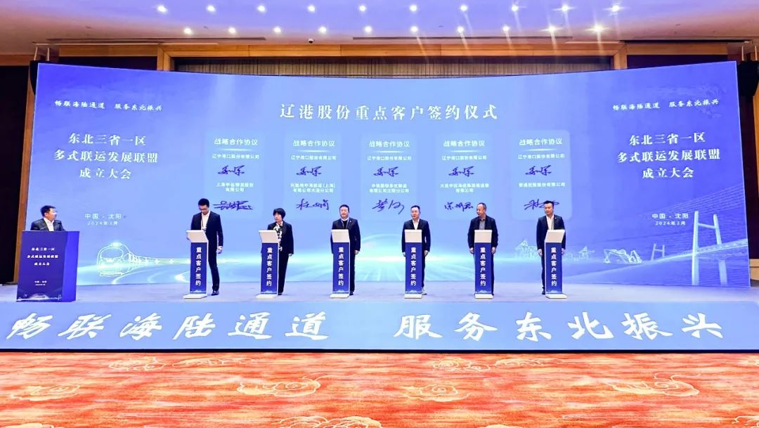 3月29日,以“畅联海陆通道、服务东北振兴”为主题的东北三省一区多式联运发展联盟成立大会在沈阳市召开。会上,作为联盟副理事长单位的辽港股份与5家战略客户企业签署合作协议,进一步巩固深化了合作伙伴关系。同时,辽港集团旗下大连集益物流有限公司、辽宁沈哈红运物流有限公司、营口益嘉营港物流有限公司3家单位荣获“东北三省一区多式联运创新发展示范企业”称号。