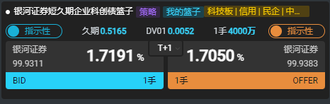 银河证券依托专业定价能力和丰富交易经验,持续为该债券篮子提供双边报价,将整体价差维持在约2 bp水平,满足投资人短期资金配置科创债需求,提升投资者认购的便利性和交易效率。