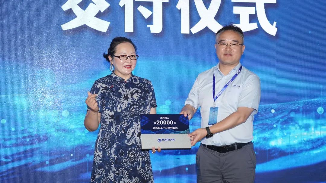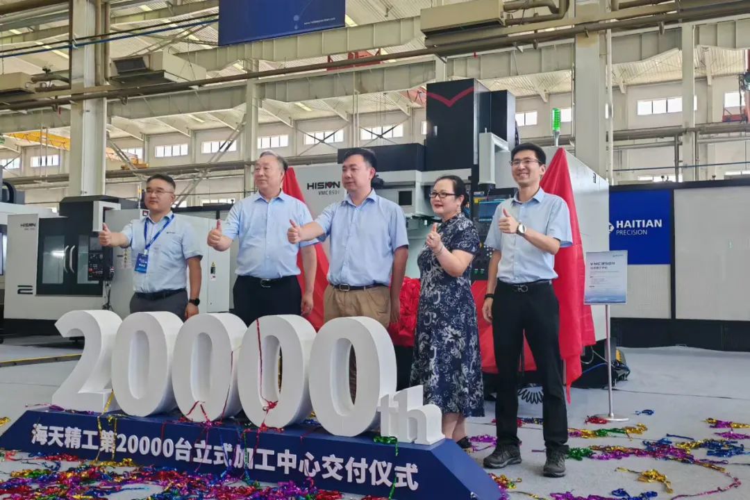 随后,现场来宾与海天精工各位领导一同为第20000台立式加工中心进行剪彩,并由精工常务副总经理周益荣进行交付授牌,标志着海天精工以此为契机,迈出笃行不怠的坚定步伐。