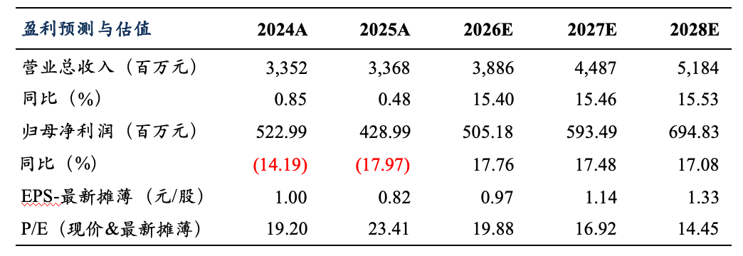 考虑国内机床市场需求复苏节奏仍偏缓,我们下调公司2026-2027年归母净利润预测为5.05(原值6.03)/5.94(原值7.27)亿元,预计2028年归母净利润为6.95亿元。当前市值对应2026-2028年PE分别为20/17/14X倍,考虑公司海外扩张加速,维持公司“增持”评级。