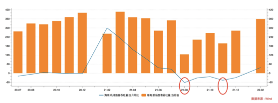 当时,国内爆发了第一波较为严重的南京疫情,感染毒株德尔塔较普通新冠病毒传染力增强了1倍以上。国内各地随后的严格防控,使得海南游客量出现了大幅下滑。2021年8月,海南机场旅客吞吐量同比大幅度下滑了62.2%。就在南京疫情刚平稳不久,11月国内又爆发了大规模疫情,海南客流再次出现大幅下滑,同比下滑了46.9%。