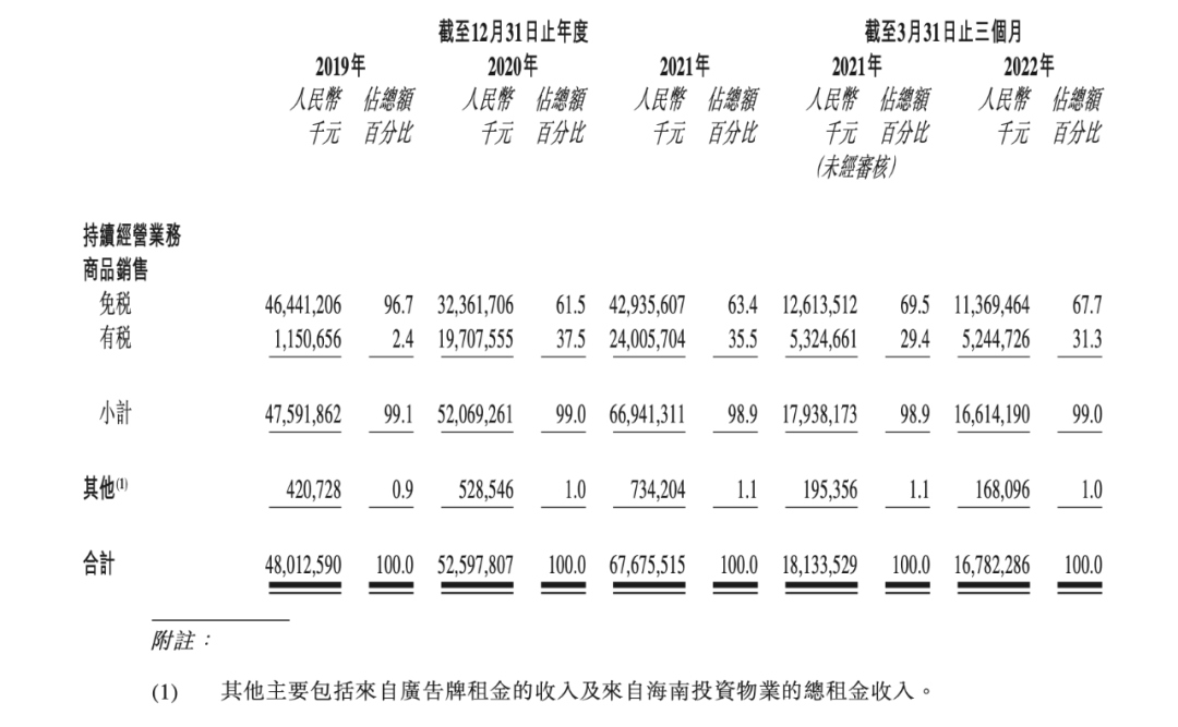 根据中国中免在港交所发布的招股书,2019年-2021年三年间,中国中免的营业收入呈逐年增长的趋势。相较于2019年的480.16亿元,2021年的营业收入676.76亿元已经有近41%的增长。