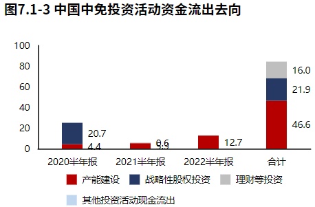 投资流出增加,主要流向了产能建设。中国中免2022半年报的投资活动资金流出,集中在产能建设,占比100.00%。中国中免2020年报到本期的投资活动资金流出,产能建设占比最大,占比55.09%。