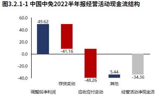 应收应付变动以及提前备货导致的大量垫资是中国中免经营活动存在缺口的主要原因。中国中免2022半年报经营活动调整后盈利49.62亿元,提前备货导致现金流出41.16亿元,应收应付变动导致现金流出48.26亿元,其他因素导致现金流入5.44亿元,最终经营活动实现现金净流出34.36亿元。