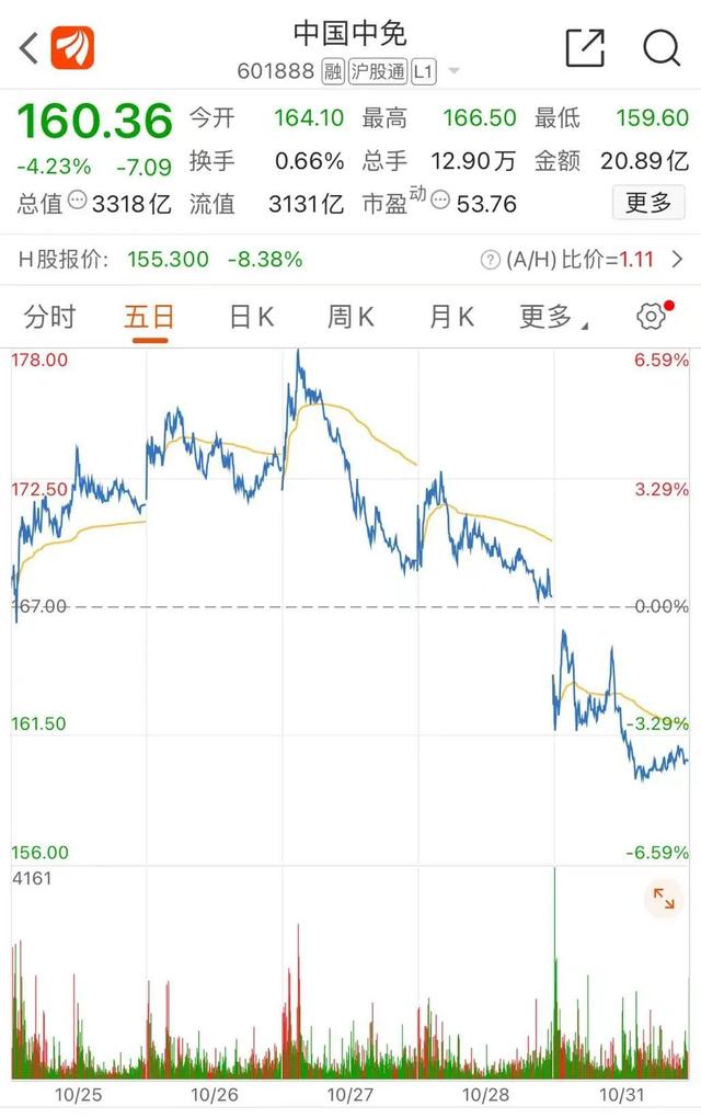 中免业绩下滑、国内疫情持续散发、国外严峻的经济形势,致市场情绪趋弱,中免股价10月底连续下跌。