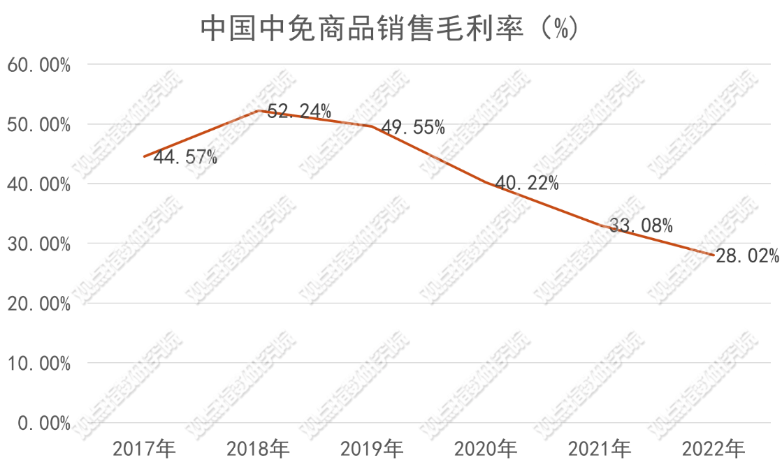 去年以海旅投、海发控为首的竞争对手相继开展折扣、低价促销,中国中免也不例外。这使得其利润有所减少,也导致免税业务毛利率有所下降,从疫情前的50%下降至2022年末的39.4%。