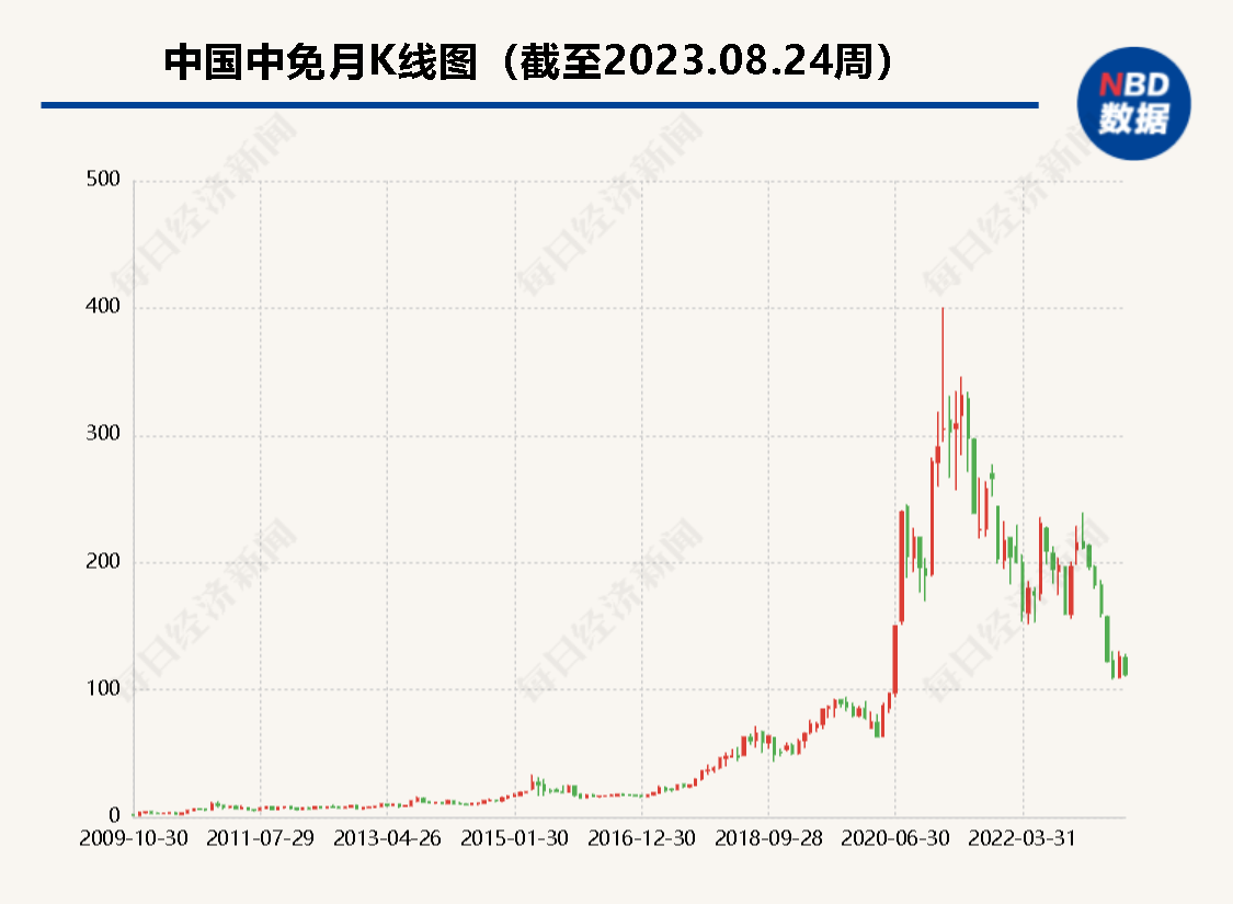 其实从疫情期间中国中免的业绩表现来看,机场免税店的缺失并未影响其利润与股价“齐飞”,业绩一度主要由海南离岛免税业务及线上有税品销售业务两部分支撑。直到2022年,中国中免交出了自2009年在上交所挂牌上市后,首个净利润同比下降的成绩单,公司股价也由顶峰超400元/股一路下跌至近期110元/股左右,投资者及从业者均需重新审视国内免税市场。