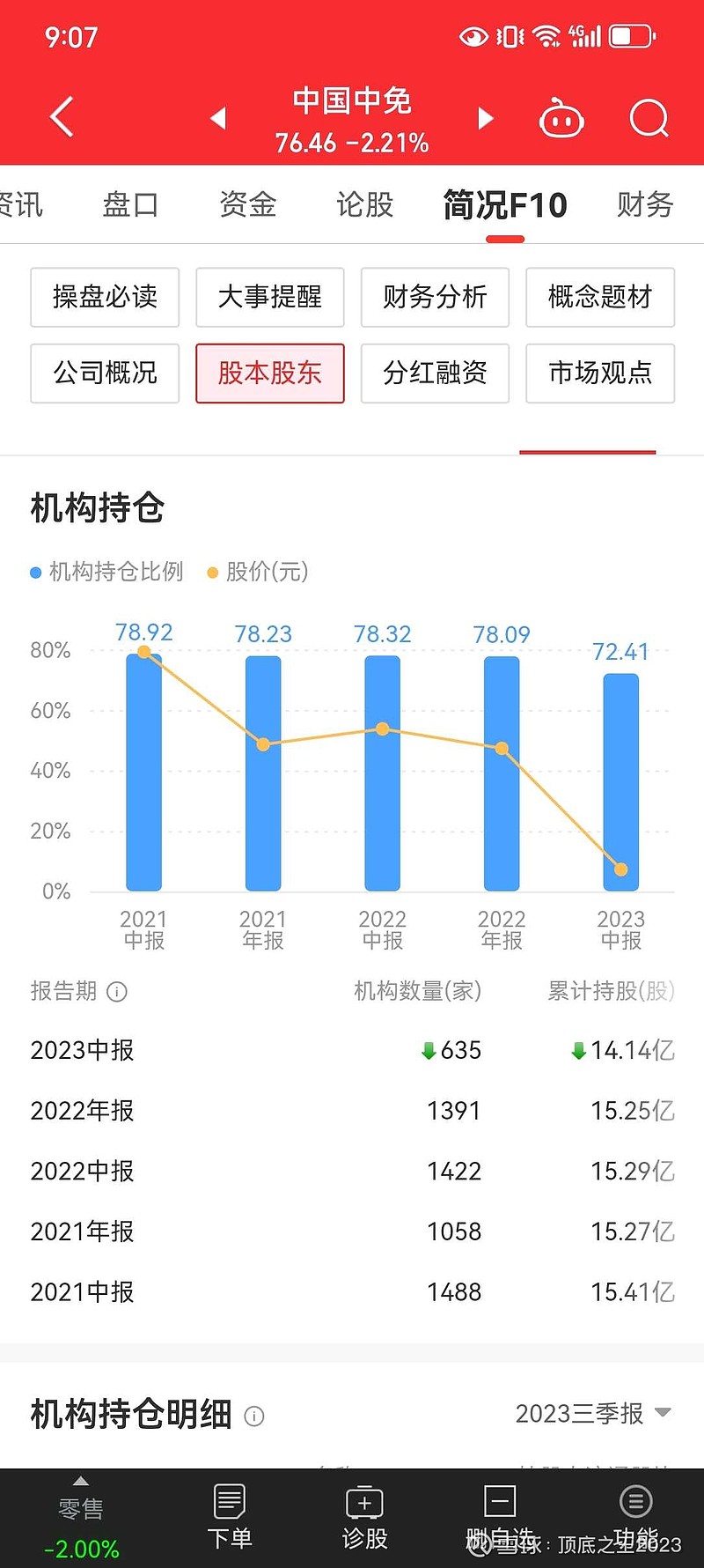 不过看得出,机构2023年一直在减持,持股机构的数量从1000多减少到中报的600多,持股数量也减少了1亿多股。