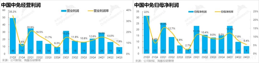 中国中免从当初“内循环”时代曾经最亮眼的零售标的指引,目前可谓在不断地向下突破底线。一方面,目前居民消费意普遍愿不高,典型可选的免税消费本就首当其冲;又因为出入境的逐渐恢复,出境购物和海外直邮的复苏则进一步消解了离岛免税和机场免税的稀缺性;甚至从本季的财务数据来看,中免在国内免税的绝对领导地位可能也由于牌照的放松,在逐步松动。