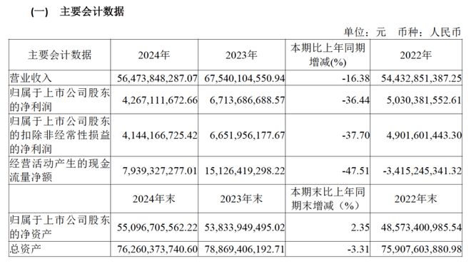 财报显示,中国中免2024全年营业收入跌至564.74亿元,同比下降16.38%,这也是近年来首次跌破600亿元大关。更值得关注的是利润的滑坡,归属于上市公司股东的净利润仅42.67亿元,同比锐减36.44%,若扣除政府补助等非经常性损益,实际经营利润更是跌至41.44亿元,同比下降37.7%,经营活动产生的现金流量净额同比暴跌47.51%,远比营收、利润的降幅更为剧烈。