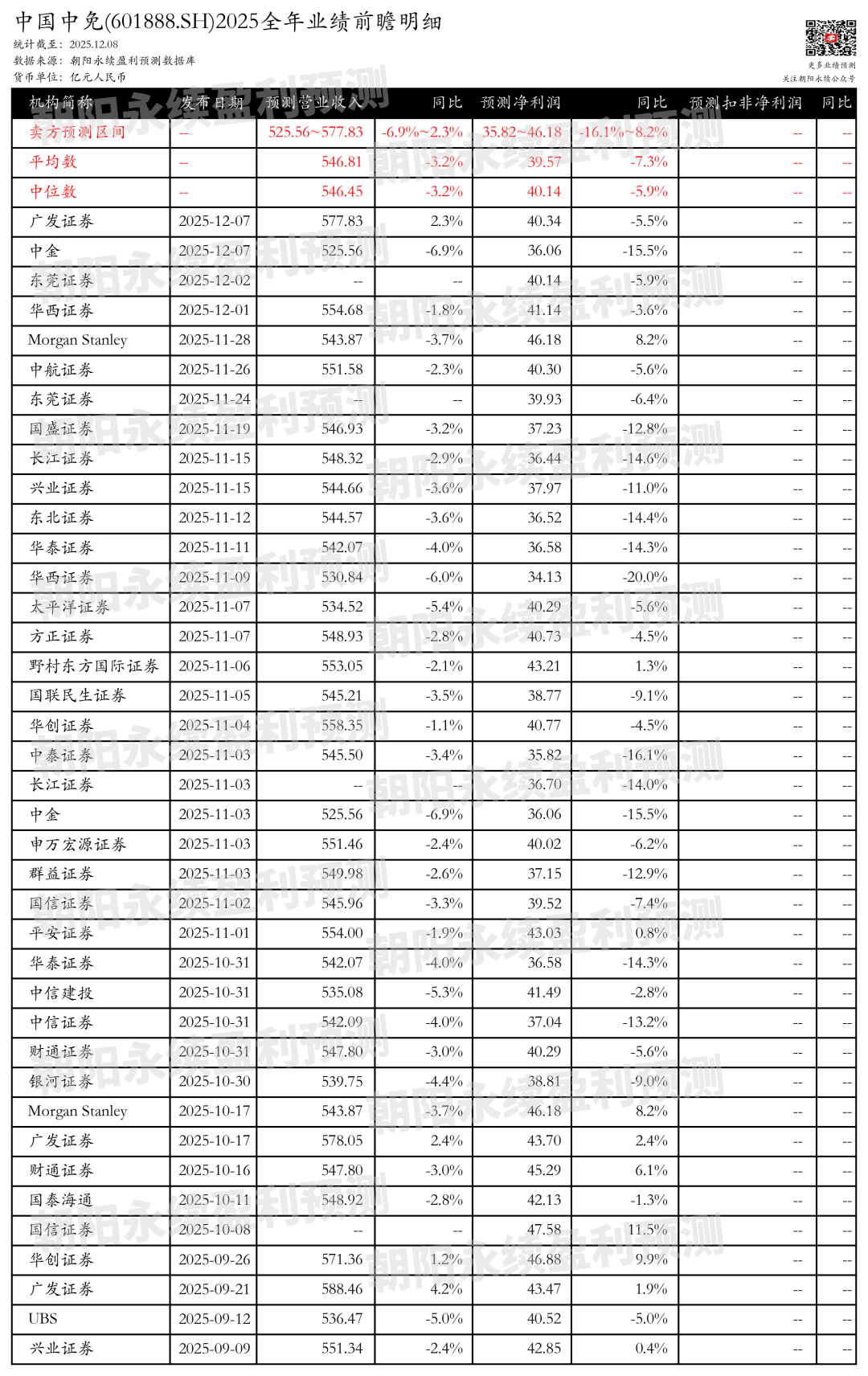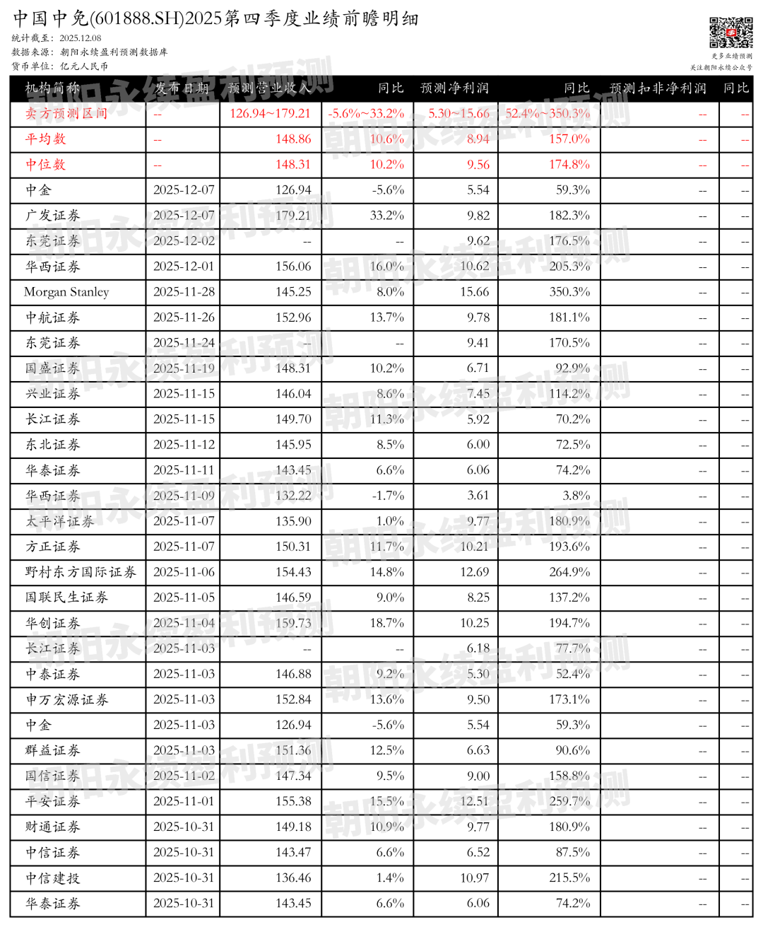 截至2025年12月08日,根据朝阳永续季度业绩前瞻数据: