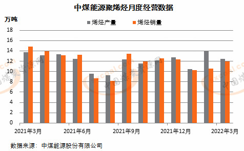 3月份,中煤能源聚乙烯产量6.1万吨,同比下降12.9%,环比下降11.6%;销量6.2万吨,同比下降19.5%,环比增长24%。聚丙烯产量6.4万吨,同比下降4.5%,环比下降8.6%;销量5.8万吨,同比减少18.3%,环比增长3.6%。