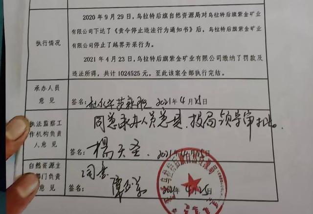 4月8号上午,紫金矿业总经理郑某到乌拉特后旗投案自首,他称紫金矿业三贵口北矿段无证开采铅锌矿,涉嫌非法采矿,经查证,2020年紫金矿业下属的子公司就开始越界开采,之前虽然被罚,却没有停止违法行为。