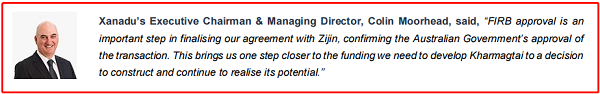 Xanadu执行董事会主席兼董事总经理Colin Moorhead表示,“FIRB审批结果表明澳大利亚政府已确认批准交易计划,这是我们与紫金矿业完成合作协议的重要一步,也使我们距离获取资金支持,推动哈马格泰开发更进一步,将有助于早日做出矿场建设决议并持续实现项目潜力。