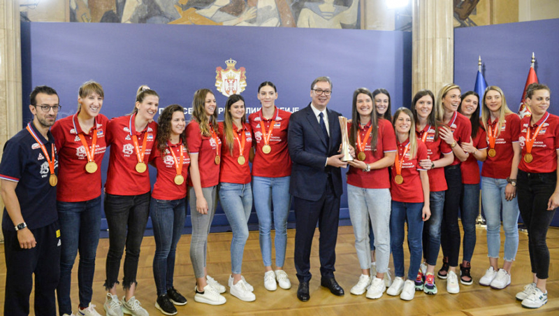 10月17日,获悉塞尔维亚女排蝉联世锦赛冠军后,紫金在塞企业第一时间发出贺信,并在当日塞尔维亚总统府举办的庆祝会上奖赠30万欧元支持女排发展。塞尔维亚总统武契奇对紫金矿业的大力支持表示感谢。