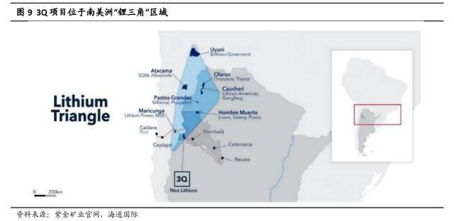 (1)阿根廷 3Q 锂盐湖项目:地处著名的普纳高原“锂三角”南端,位于阿根廷最大的锂生产区卡塔马卡省西南地区。