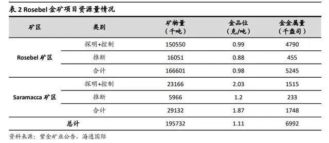Rosebel 金矿项目资源储量大,区域成矿潜力大;项目为露天开采、使用传统氰化工艺的矿山,规划未来 12 年年均产金 8.6 吨;项目基础设施完备,后续无大规模的资本性支出。