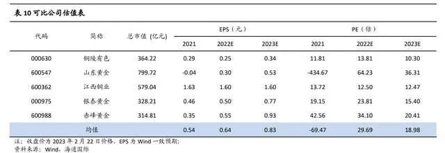 我们预计 2022-2024 年 EPS 分别为 0.77、0.99 和 1.11 元/股,随着公司多个铜、金和锂矿投产、达产运营,公司净利润将迎来快速增长期,参考可比公司估值水平,给予 2023 年 20 倍 PE 估值,对应合理价值 19.80 元。