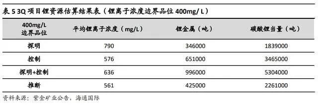 3Q 项目为全球同类项目中规模最大、品位最高的项目之一,矿权面积 353 平方公里,覆盖整个盐湖表面和卤水湖,资源量大、品位较高、杂质低,开发条件好,具有较好找矿前景和较大扩产潜力。估算结果显示目前该项目碳酸锂当量总资源量约 756.5 万吨,锂离子浓度边界品位 400mg/L。