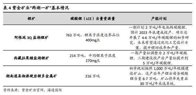 公司正加速进军新能源新材料领域,拥有阿根廷 3Q 盐湖锂矿、西藏拉果错盐湖锂矿、湖南道县湘源硬岩锂多金属矿等项目,整体碳酸锂当量资源量超过 1,000 万吨,约居全球主要锂企资源量前 10 位,远景规划碳酸锂当量年产能 15 万吨以上,为公司成为全球重要锂生产商奠定基础。