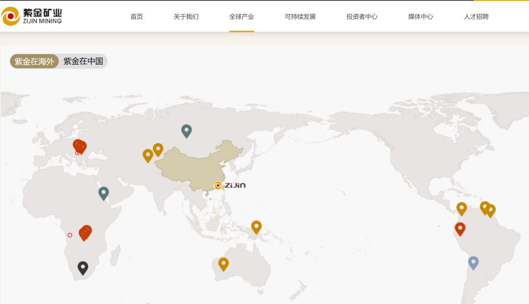 近年来,紫金矿业不断加大对海外资源的布局,紫金矿业董事长陈景河表示,紫金矿业坚持全球化发展战略,目前公司海外矿产资源储量和主要矿产品产量及利润已全面超越国内。陈景河表示,紫金矿业战略目标是2030年主要经济指标进入全球前3-5位,实现“绿色高技术超一流国际矿业集团”。