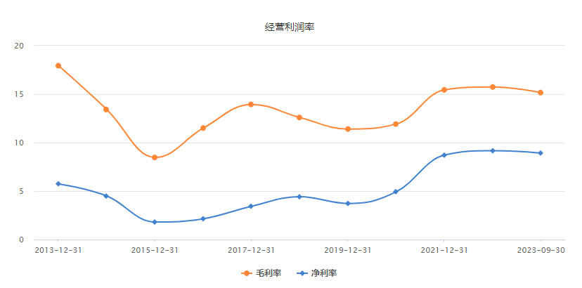 从毛利率和净利率的角度看,近几年也都稳定维持在相对较好的位置。