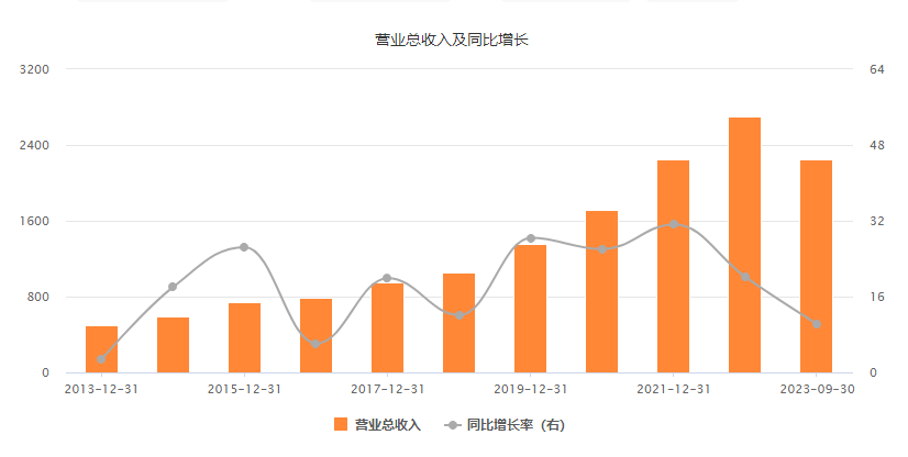 在2018年迈过1000亿的大关后,营收在不到5年时间里涨了近两倍。