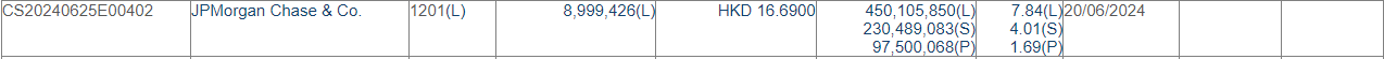 减持后,JPMorgan Chase & Co.最新持好仓数目为450,105,850股,持好仓比例由8.00%下降至7.84%。