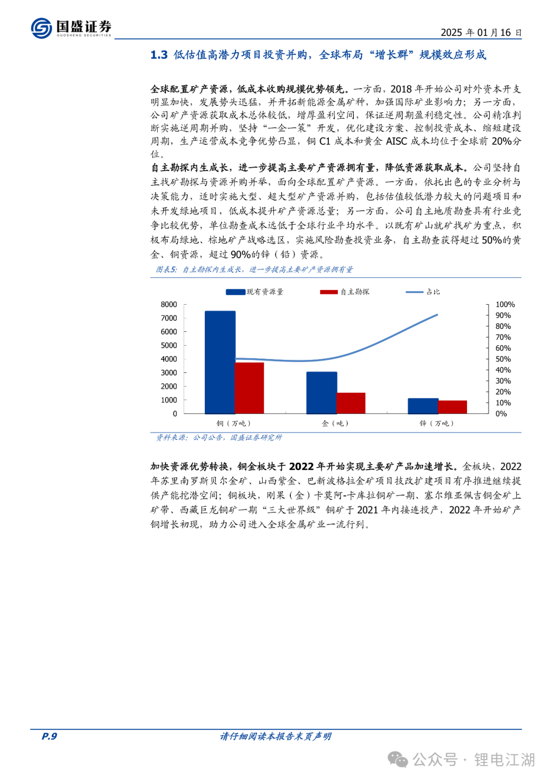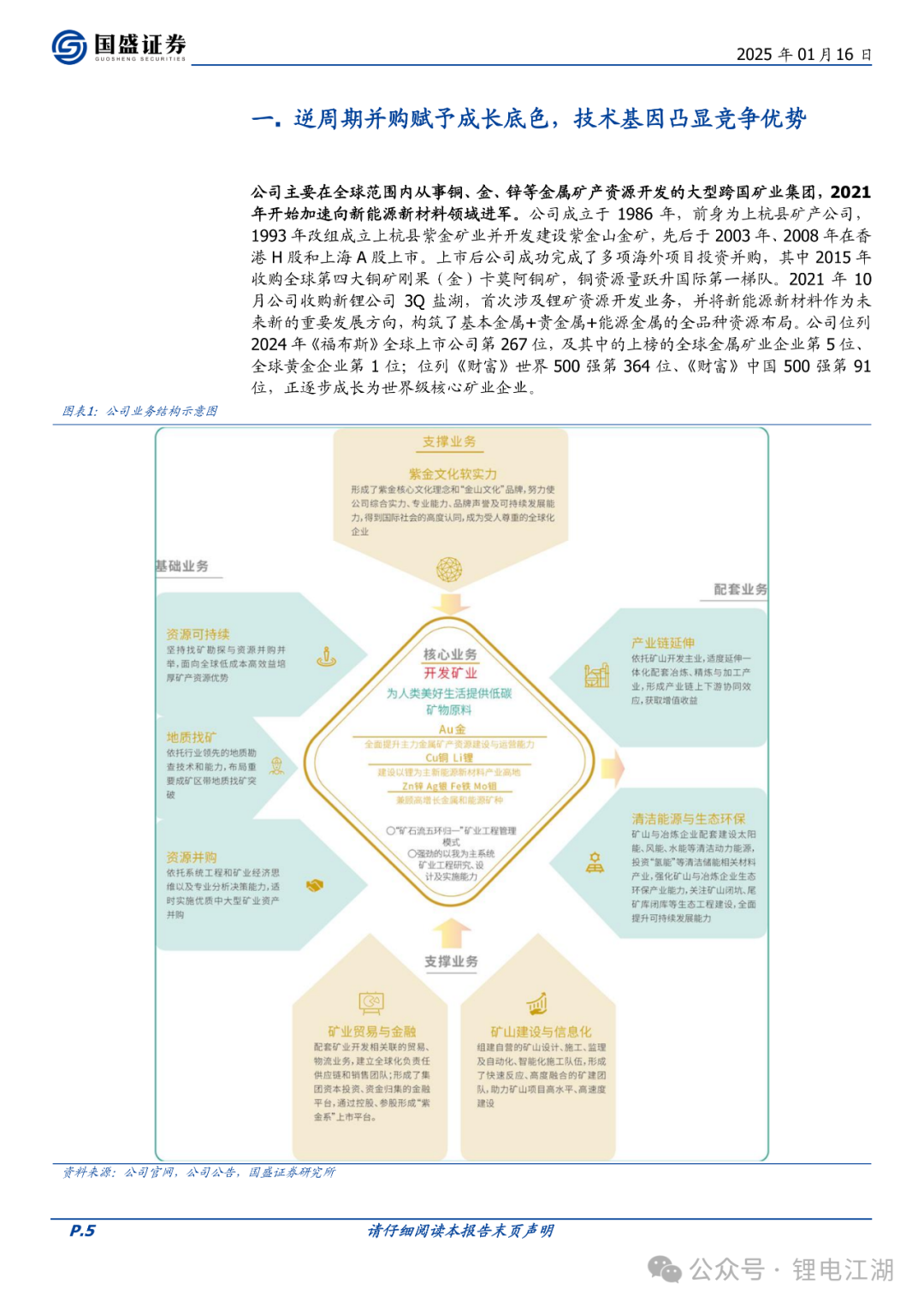 逆周期并购世界级核心资产,稳步增产凸显公司强阿尔法:1)核心领导层为公司注入逆周期并购基因,资源储备大幅提升,铜、金、锌、锂资源量位居全球矿企前十;2)核心铜金品种世界级矿业项目接续投产,矿产品产量大幅增长,核心资产如卡库拉、佩吉、巨龙等项目产量持续释放,在世界级核心资产支撑下公司强阿尔法属性逐步凸显,矿业巨头未来成长可期;3)依托主业下延绿电新材料业务,补齐公司能源金属品种板块。