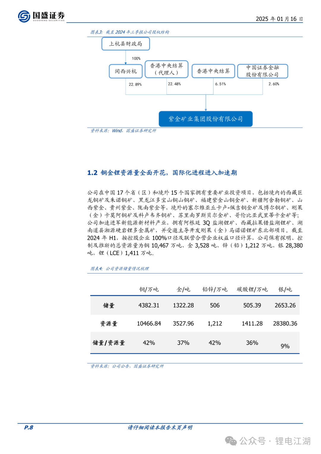全球布局优质铜矿,依托世界级资源实现公司稳步成长。1)卡莫阿-卡库拉世界级铜矿资源量约4266万吨@2.52%,2024H1实现铜产量8.36万吨((益产产量),三期采选工程于2024年5月投产,达产后合计矿产铜产能将达60万吨量级,跻身全球第四大铜矿山。2)佩吉铜金矿上下部矿带合计铜资源量1969万吨,金443吨。其中上矿带铜品位高达2.43%,2024H1实现铜产量9万吨;下矿带拟采用自然崩落法,计划2025年内完成佩吉铜金矿上下矿带、博尔铜矿综合体改扩建工程,总体年产能达30万吨。3)控股巨龙铜矿含铜资源量1927万吨@0.31%,2024H1实现铜产量4.05万吨((益产)。一期15万吨/日改扩建工程正在推进,二期改扩建工程计划2025年底建成投产,一二期联合年总矿产铜将达30-35万吨。