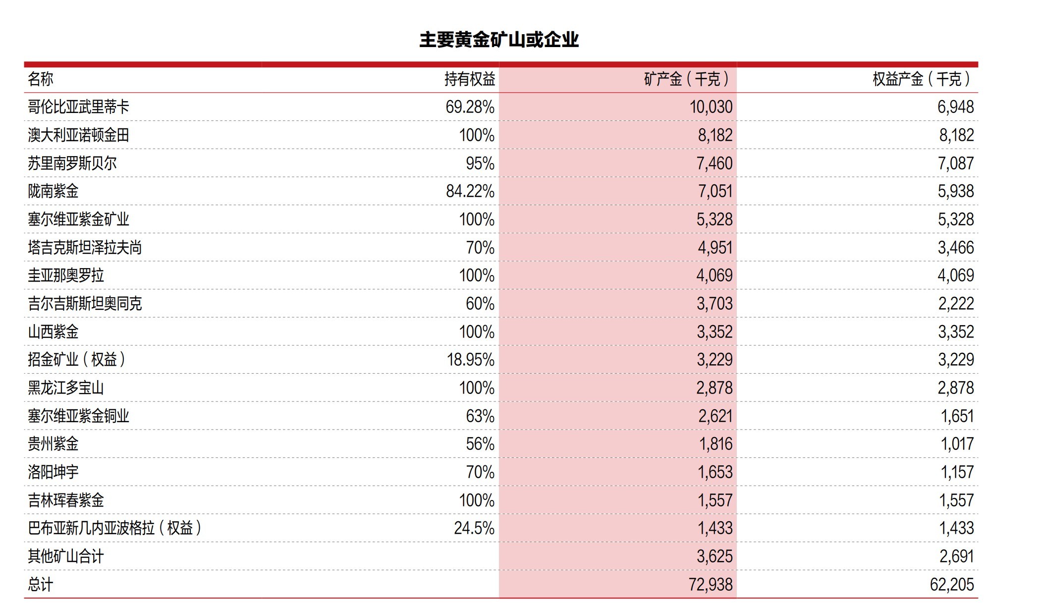 紫金矿业的黄金资源量及产量位居全球前六,近五年矿产金产量年复合增长率达12%。