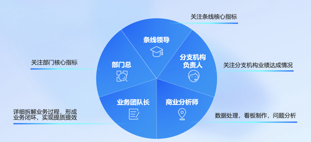 此外,通过漏斗图、瀑布图、桑基图等图表工具,部门可以快速形成具有可读性的业务检视,并确定业务缺口,以便更好地针对出现问题的地方进行调整。比如借助BI平台可以快速定位核心份额下滑的原因,并采取相应策略进行配对,随后可以通过日跟踪、月跟踪和年度KPI审视等方式来跟踪和审视市场份额增长情况,以更好地实现业绩目标达成。