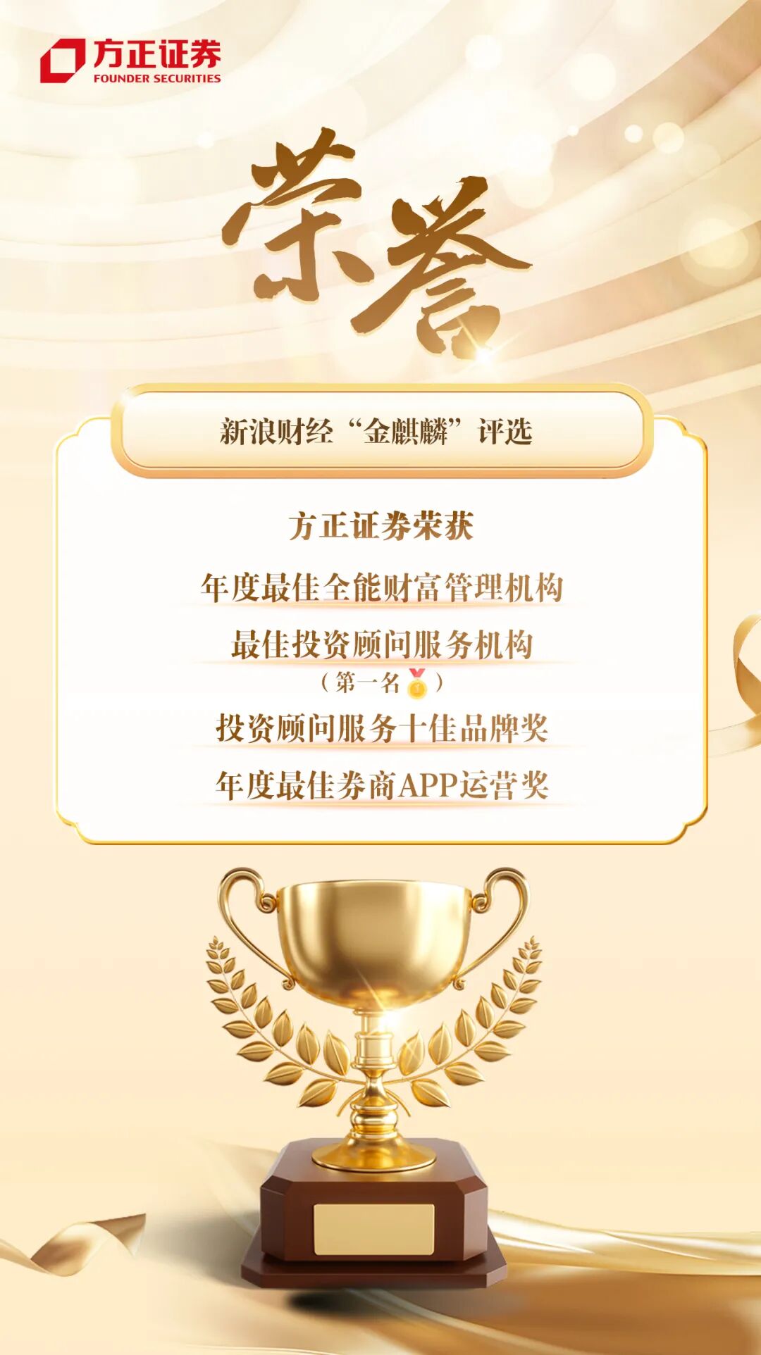 1月15日,由新浪财经主办的“2026全球与中国资本市场展望论坛暨金麒麟最佳财富管理机构、最佳投资顾问盛典”在北京举行,现场也揭晓了2025金麒麟最佳财富管理机构和最佳投资顾问评选结果,方正证券获得如下奖项: