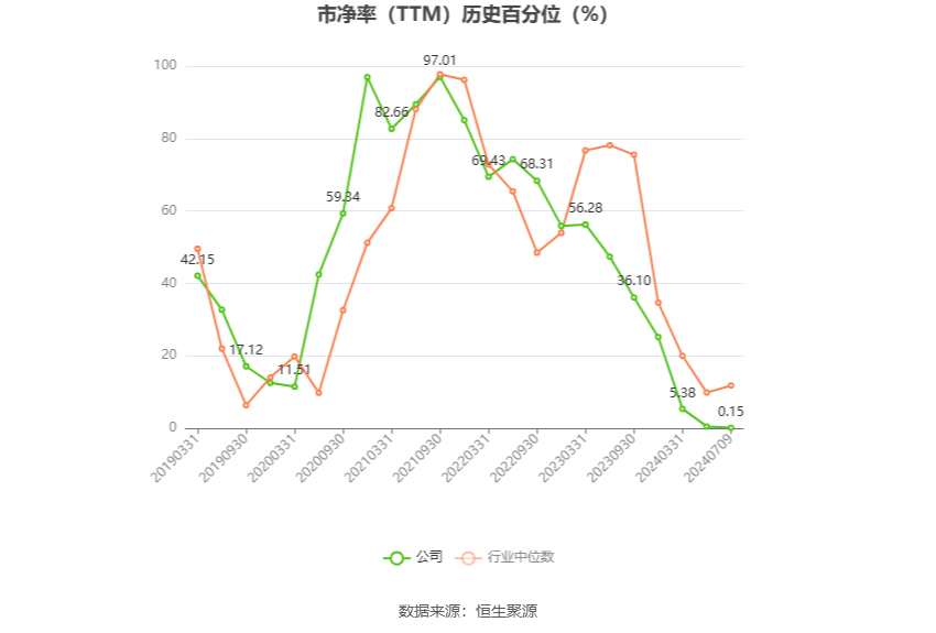 市盈率为负时,不显示当期分位数,会导致折线图中断。