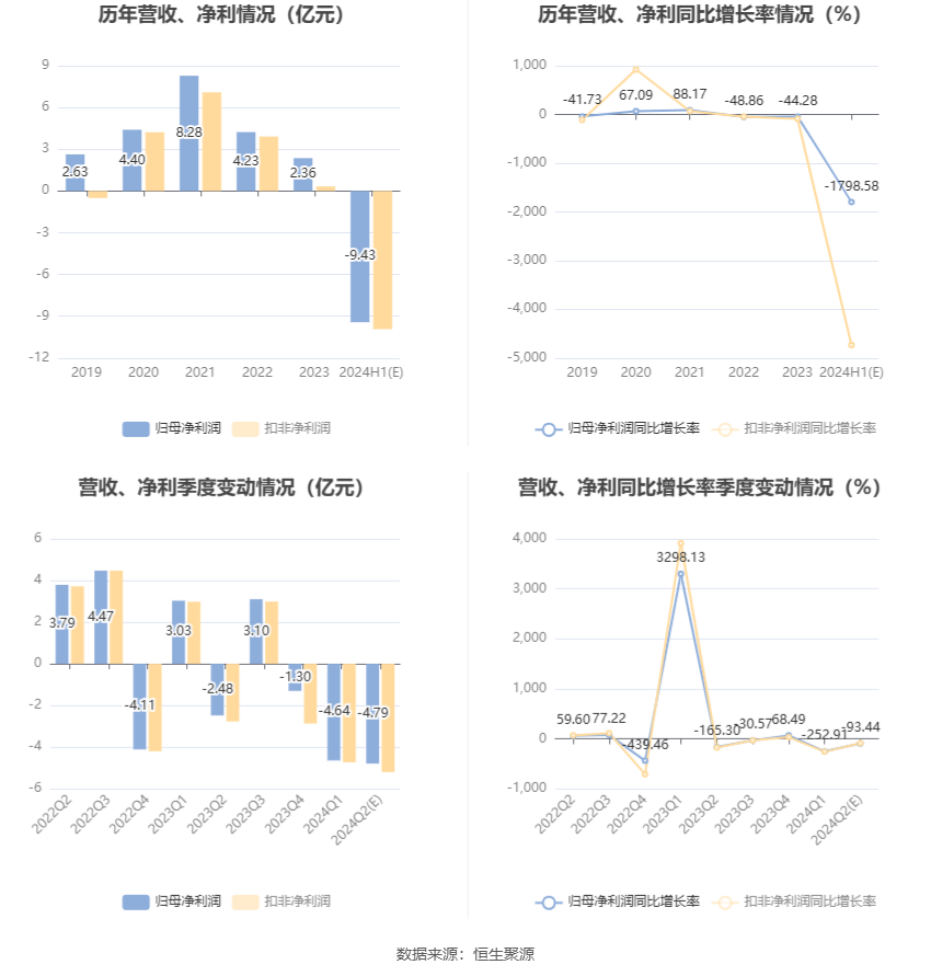 报告期内,受行业环境、市场波动情况、宏观经济形势等综合因素影响,公司新材料业务所涉及的硅片环节市场竞争加剧,产品价格持续下降,相关营业收入和毛利率降幅较大且存货跌价准备同比大幅增加,对公司整体盈利能力产生负面影响,导致公司本期净利润为负值。