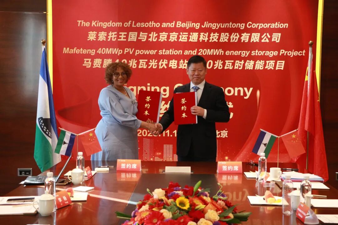 2025年11月19日,莱索托 财政部 长马特拉尼亚内女士与 京运通 董事长冯焕培先生在北京共同出席并完成了PPA(电力购买协议)与《政府担保协议》的签署。随着本次签约圆满完成,我司莱索托40MW光伏+储能BOT项目的全部核心法律文件已悉数落地。