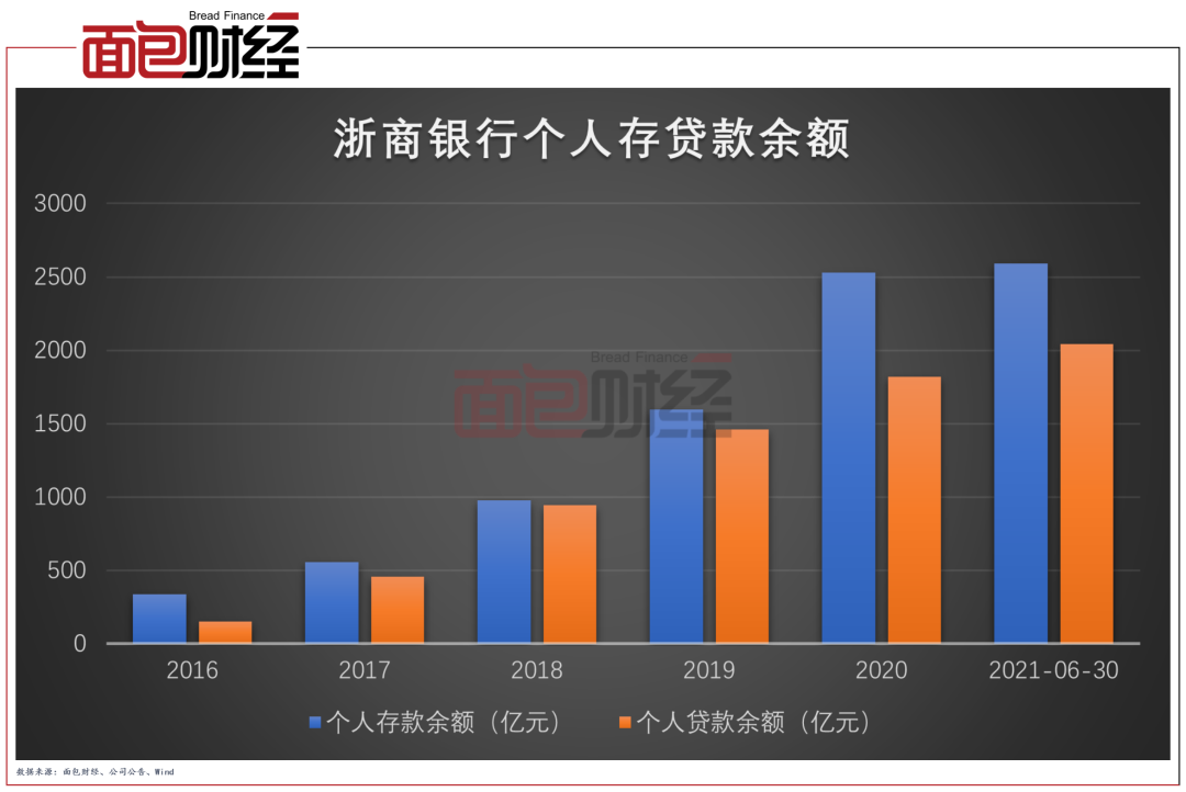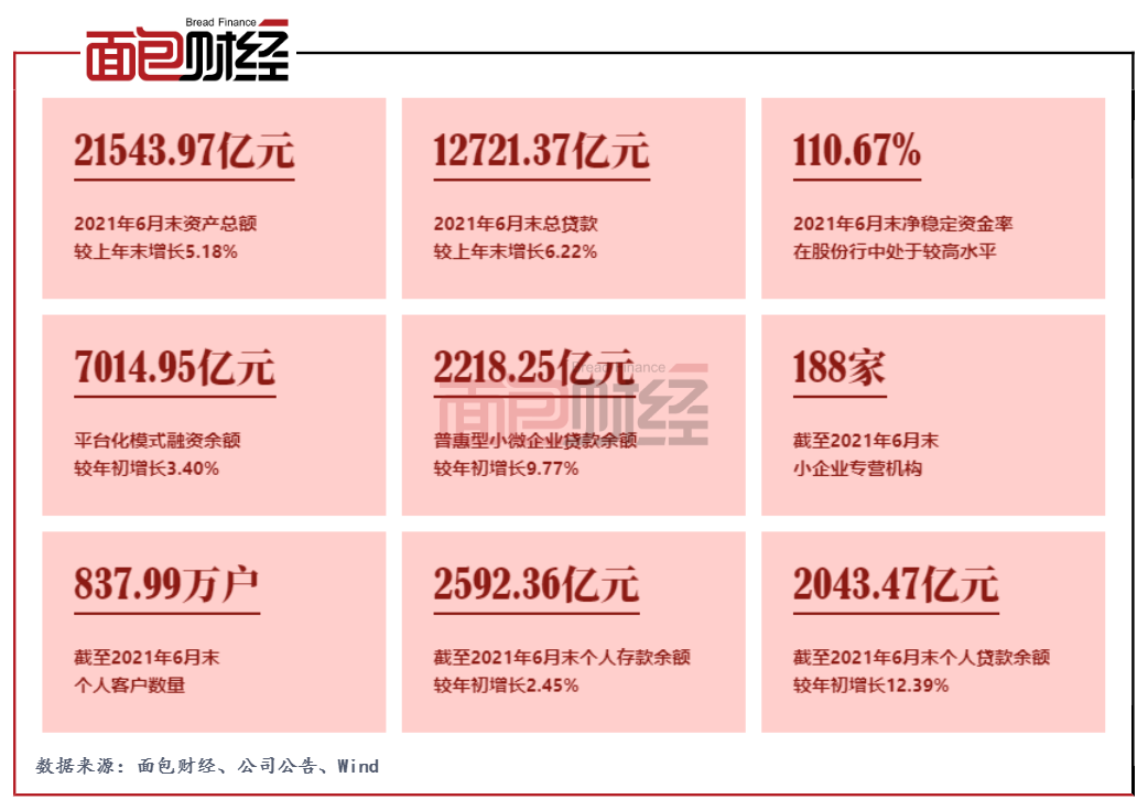 个人存贷款方面,截至2021年6月末,该行个人存款余额2592.36亿元,较年初增长2.45%。个人贷款(包括个人房屋贷款和个人消费贷款)余额2043.47亿元,较年初增长12.39%。