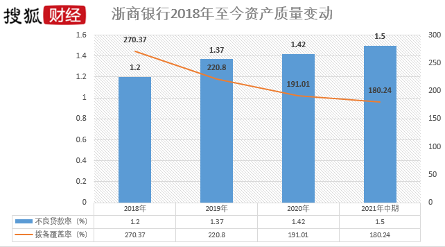 至6月末,浙商银行不良贷款率1.50%,较年初增长0.08个百分点;拨备覆盖率180.24%,较年初降低了10.77个百分点。
