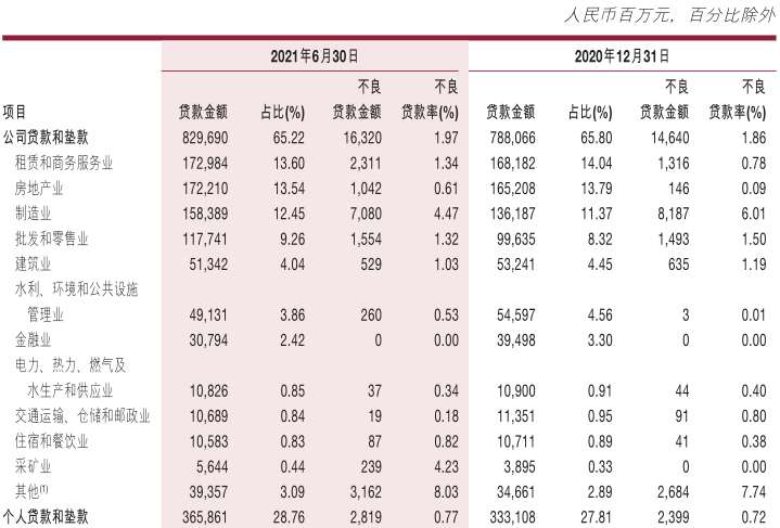 不良率方面,与行业相同,制造业不良率最高,为4.47%。但与上年末相比,这一数值已降低了1.54个百分点。