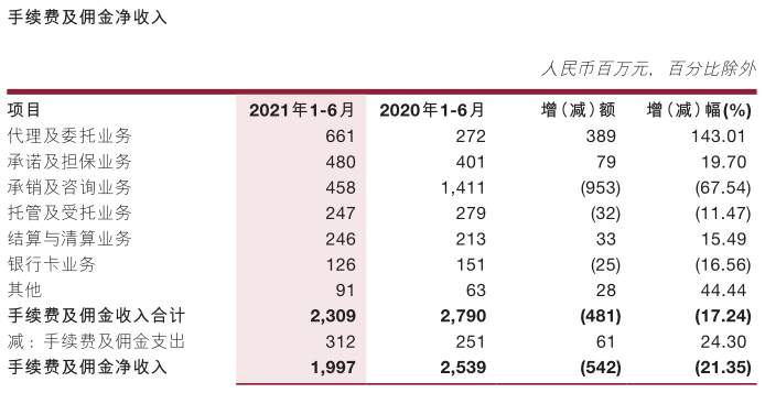 但在上市银行上半年的另一重要利润增长点——手续费及佣金净收入方面,浙商银行则逆势大降,实现手续费及佣金净收入19.97亿元,同比下降21.35%。