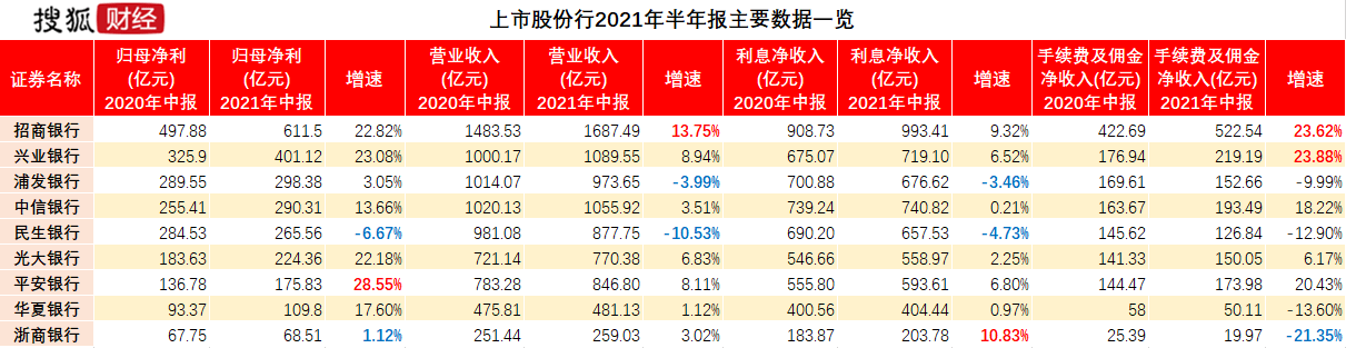 上半年,平安银行、兴业银行、招商银行、光大银行均实现了超20%的净利润增速,中信银行、华夏银行也均涨超10%,仅民生银行实现净利负增长,浙商银行以1.12%的增速位列倒数第二位;营收增速稍好一些,浙商银行3.02%的数值可排在同业第六位。