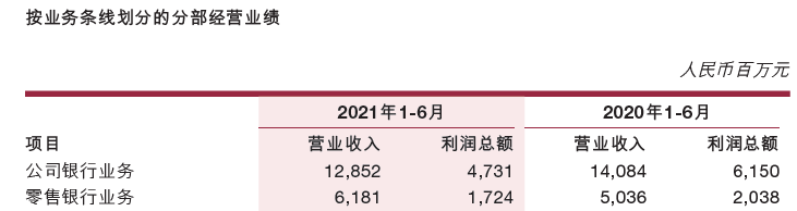 吸储困难下,浙商银行贷款业务盈利也承压明显。根据半年报,该行公司银行业务及零售银行业务相较去年同期的利润总额均有所下滑,其中公司银行业务营收更是由140.84亿元下降至了128.52亿元。