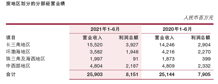 根据2021半年报,公司前6个月实现营业收入259.03亿元,同比增长3.02%;归属净利润68.51亿元,较同期增长仅为1.12%。